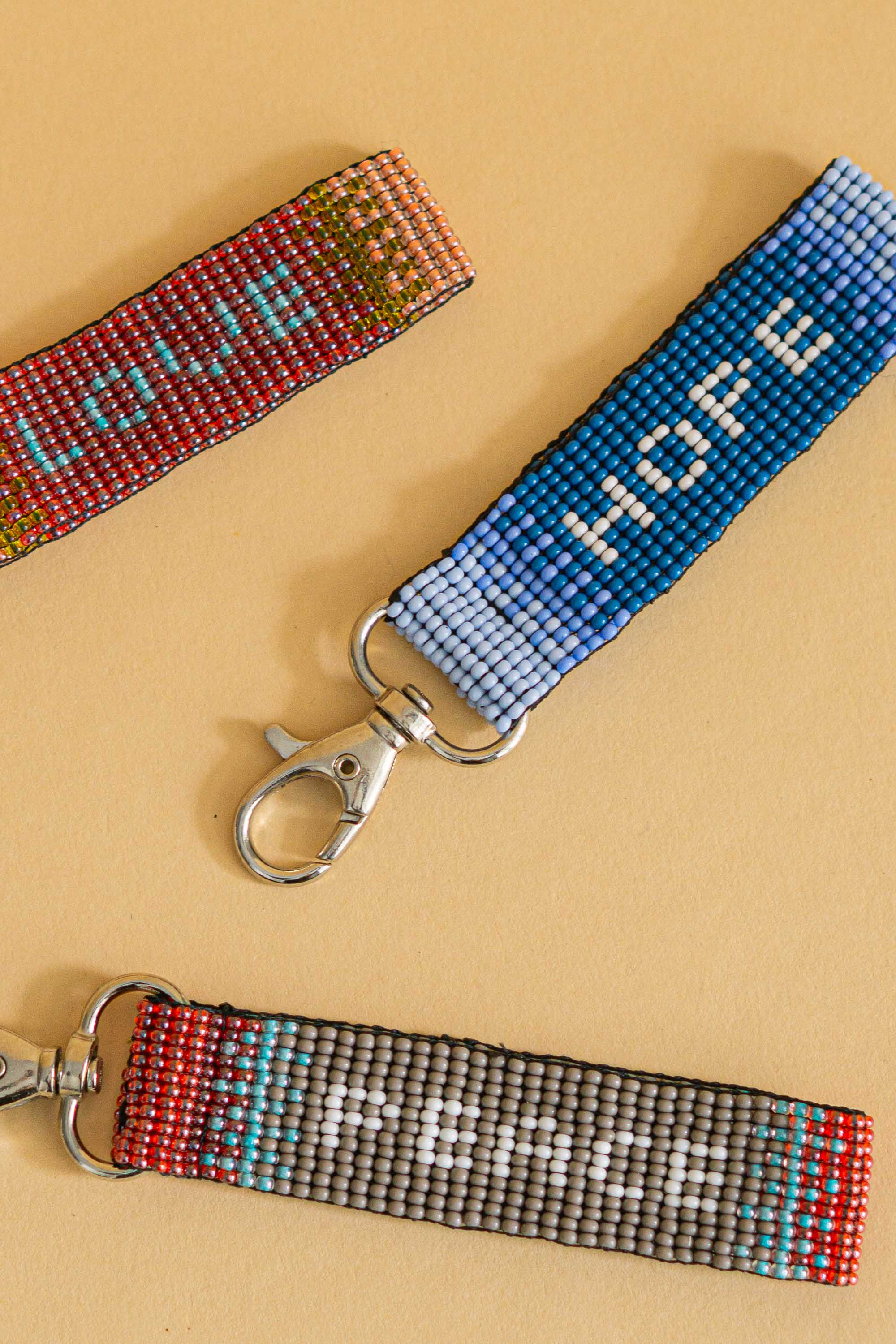 Perlenøglering lavet i kvindeprojekt i Kenya hvor kvinder fra Dr Congo, Burundi, Rwanda & Sydsudan laver smykker, kurve og accessories.