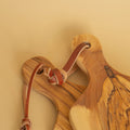 Hvert stykke er unik med sine naturlige åremønstre og en læderstrop til ophæng.