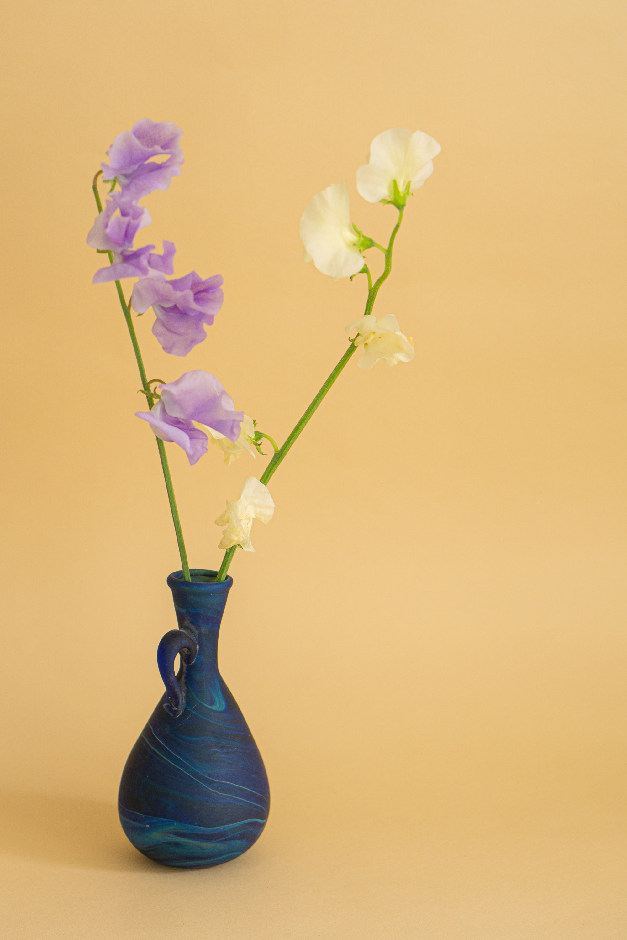 Det mundblæste glas er inspireret af den gamle fønikiske glaskunst, hvor farver og mønstre flettes sammen til en harmonisk helhed.